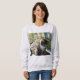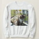 On this beautiful Women's Basic Sweatshirt my cat sits among plants and flowers and is watched by a Fairy. The image is composition of a photo with integrated a digital art. The best color for this shirt is "Ash".