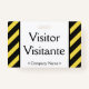 This basic badge design features the messages "Visitor" and "Visitante", and a customizable company name or other custom message. A badge like this could be used to identify that somebody at a workplace or business is an authorized guest/visitor. [~Z0000307]