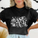 "basic witch halloween" funny women's white Halloween t-shirt features a modern and simple black typography design