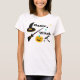 "Basic Witch" declares this cute Halloween themed shirt for her. Around the black text are images of a witch's hat, a broom, a jack o' lantern, and bats. Fun, especially for someone with a good sense of humor!