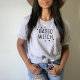 "Basic Witch" funny women's Halloween t-shirt features a modern and simple black typography design with star shaped accents.