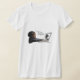 The material is a great quality that is hard to find with most tee shirts. Fabric was not see-through or thin at all, but was also very soft and comfortable. The shirt description states that it runs a little small, so I sized up one size for a perfect fit! I would definitely buy this type of tee shirt again because I love the fit and high quality fabric that I cannot find anywhere else. The printing was perfect and just as pictured. Loved the cute quote and really enjoy the tee in both the quality and design. I love quirky typography designs and funny quotes and I am extremely pleased with the overall quality and value I get at Zazzle!