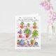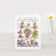 A blank note card with a watercolor illustration of different varieties of basil and ingredients to make pesto.