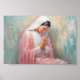 "Bask in the Light" is an artistic masterpiece that marries minimalism and profundity. With exquisite skill, this painting captures the essence of humility and devotion. Mary, portrayed in soft white and pink robes, kneels in prayer with an aura of reverence and sacredness. The background, awash in calming blue and radiant gold, provides the perfect backdrop for this heartfelt scene. This painting is a study in simplicity and mastery, exemplifying how the gentlest brushstrokes can convey profound emotions.