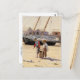 A fine art postcard with the watercolor painting by the American artist Winslow Homer (1836-1910), A Basket of Clams (1873). Two boys carrying a basket of clams on the beach with a schooner in the background.
