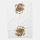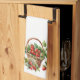 A gift for mom, a kitchen towel with a basket of fresh Strawberries all on a crisp white background.
