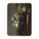 Basket of Fruit by Edouard Manet, oil on canvas c. 1864, is a still life painting of a woven basket on a wooden table with a small pile of fruit and a knife. Painted in broad, fluid brush strokes of deftly applied oil paint, the painting exemplifies the flattened form and emphasis on the picture plane that Manet pioneered. Against the brushy, gray and brown table and background the forms of the apples, peaches and fruit sing in clear notes of color, particularly the icy violet tone of the plum. Harking back to the realism and vivacious brush work of Franz Hals and the Little Dutch Masters, as well as the painterly qualities of Rococo realists such as Chardin, the still life marks the beginning of many of the concerns of modern painting.