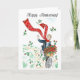 A whimsical Wedding Anniversary card with a cyclist wearing a long scarf with red hearts on, and hundreds of red rosebuds overflowing from the bicycle basket.; from a watercolour painting by Judy Adamson. The inside is left blank for your own message.