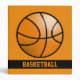 Cool orange cartoon basketball illustration on an orange background color and a customizable text area that now reads "basketball".