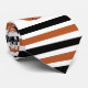 Basketball ball and black, dark orange stripes neck tie. This tie design showcases a basketball and black and dark orange stripes.