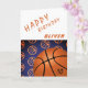 Basketball Ball Sports Happy Birthday Kid Card. Modern basketball birthday card for a boy or a girl who loves basketball. Basketball pattern with different orange basketball balls on dark purple color. Personalize with your name and age.