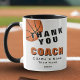 Modern Basketball Ball Thank you Coach Mug. This personalized mug for coach has basketball balls. Great keepsake mug for thanking sports coaches, high school team trainers, mom or dad coach, etc. Customize any text on the mug. Add the coach`s name, team name and year.