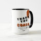 Modern Basketball Ball Thank you Coach Mug. This personalized mug for coach has basketball balls. Great keepsake mug for thanking sports coaches, high school team trainers, mom or dad coach, etc. Customize any text on the mug. Add the coach`s name, team name and year.