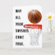 Funny basketball birthday card swishes for player, coach and team sports fans.