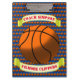 A basketball and banners make up this fun clipboard. Great gift for a coach. Customizable so you can add your own text and change the background color. Makes a great gift!