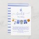 Basketball Clothesline Baby shower Books for baby cards for a baby boy. Features watercolor basketball jersey, shoes, referee shirt, and a basketball on clothesline in blue & brown colors. All wording can be changed, to any age birthday or to a baby shower. To make more changes go to Personalize this template. On the bottom you’ll see “Want to customize this design even further? Click on the EDIT using Design tool. From there you can change some of the fonts & some colors, move things around or delete what you need.