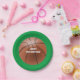 Basket ball sports themed paper plates, with graphics of a brown basketball against a green background. Personalize the white text for your special sports themed event, matching paper napkins, cups and invitations are available.