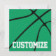 Basketball Custom Team Name Green Basketball Sport Square Invitation: A personalized square basketball invitation for coaches, teams and players with green team colors. Could be used to announce a basketball party, banquet, camp or other team event. Click the "Customize" button to adjust the font style, size and color!