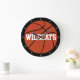 The Basketball Custom Text Decorative Wall Clock: A beautiful customized wall clock for basketball players, coaches and fans! Personalize it with the name of your basketball team, school, tennis program, whatever! Would look great in a basketball player's bedroom, a basketball fan's game room, or a basketball coach's office! If you just want a plain basketball clock with no text, you can delete the placeholder text "Wildcats" and leave the text box blank.