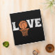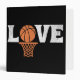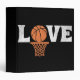 Retro style grunge "Love" text design with orange basketball and basketball net decoration