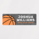 Waterproof basketball property labels featuring a basketball on a rough concrete background in various shades of gray. Customizable name and telephone number on the side. Great for labelling your kid's belongings.
