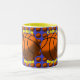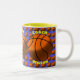 Three Pointer! Basketballs make up this fun mug. Customizable so you can add your own text and change the background color. Makes a great gift!