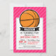 Basketball on Pink Stripes, Striped Invitation