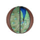 Peacock proudly displaying his tail feathers of green with blue "eyes". Brilliant royal blue body and head feathers, with white feathers around the eyes and on crown.