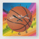 A very colorful and unique clock for basketball fans. Personalize with a name (like an autograph) over the basketball. The name text is easily edited by using the template. Other design features can also be changed (including the background). For other changes (different type font, color, size or placement OR to replace, resize, rearrange the background or the basketball image) select "Personalize" then select "Edit using Design Tool." The numbers can also be changed by using the Design Tool -- delete the current numbers and add your own (choose "Text" and choose your type font) at the appropriate spots. Be sure to also check out the options on the right for different clock styles and for a different color of hands.