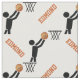 Basketball player with ball and your name personalized fabric that displays a minimalist icon of a black silhouette of a basketball player trying to put the orange ball in the basket and your text on white background. Some elements courtesy of vectorportal.com.