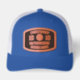 Baseball, Golf and Trucker Hat/Cap with leather patch, has space for personalized Name, Player Number, Team Name (2 lines) and Sport (Basketball) Image. Fun gift for basketball player, coach, or team. Great Thank You gift for coach. Hat is available in several colors, color combinations, Retro or Richardson 112. Patch is available in several shapes. This sample defaults to royal blue and white retro, with convex rectangle patch with black background. All Rights Reserved © 2025 Alan & Marcia Socolik.