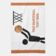 Basketball player with ball kitchen towel that showcases a minimalist icon of a black silhouette of a basketball player trying to put the orange ball in the basket and your text on white background with a border in the same color of the ball. This cool design is a template and it is completely customizable. Personalize it and add the text “Best basketball player” or monogram, name or your message. Some elements courtesy of vectorportal.com.