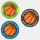 Waterproof, round basketball property labels in dark gray, green and blue with customizable name and telephone number. Great for labelling your kid's belongings.
