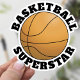 A sporty sticker with a basketball and the phrase 'Basketball Superstar' curved around the ball. Great gift idea for your sports player.