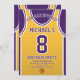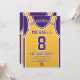 Celebrate your special day with this Basketball Jersey Birthday Invitation, designed for true basketball fans! Featuring a bold jersey design inspired by the iconic purple and gold colors, this invite is perfect for kids, teens, and adults who love the game. Personalize it easily with your name, age, party details, and even team number in just a few clicks. Available in multiple sizes, printed on premium quality paper with a wide range of finishes to match your style. Choose from different paper types, fast printing, and quick shipping so your invitations arrive on time. Whether it’s for a sports-themed party or a Lakers fan celebration, this invite is the perfect way to get your guests excited.