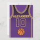 Celebrate your special day with this Basketball Jersey Birthday Invitation, designed for true basketball fans! Featuring a bold jersey design inspired by the iconic purple and gold colors, this invite is perfect for kids, teens, and adults who love the game. Personalize it easily with your name, age, party details, and even team number in just a few clicks. Available in multiple sizes, printed on premium quality paper with a wide range of finishes to match your style. Choose from different paper types, fast printing, and quick shipping so your invitations arrive on time. Whether it’s for a sports-themed party or a Lakers fan celebration, this invite is the perfect way to get your guests excited.