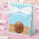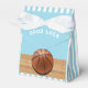 Creative basketball party favor gifts featuring bball on a light blue background. Edit text to personalize for basketball birthday party, game day, Senior Night or other sports-themed event.