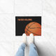Home welcome mat with a basketball theme designed with a large basketball in the background and the words Players Welcome in a grunge style typography design with black backdrop that makes it all pop. Created for sports fans, basketball fanatics, or put this in front of your locker room.