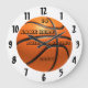 Personalized basketball clock with Name of player`s,Name of team,Number of jersey and the Year on it. white and black basketball.Background color can be change to team color. This time piece is great for a gift.Delete any or all text. IMPORTANT Personalize each timekeeping device,ONE at a Time, ADD that clock to CART.