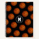This basketball spiral notebook features a pattern of basketballs on a black background - customize with monogram - by katz_d_zynes