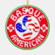 Basque cross, with USA flag, and lauburu motifs and the text Basque American. In red and green.