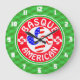 Basque cross, with USA flag, and lauburu motifs and the text Basque American. In red and green.