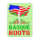 Map of the USA with flags of the Basque Country and American blended into it with the text Basque Roots in red and green.