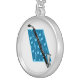 Bass Clarinet with Blue Background and Music Notes Silver Plated Necklace