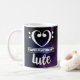 I Love Playing My Lute. Double bass clef heart coffee mug is perfect for any lute player or fan of this beautiful string instrument. Musical bass clef heart mug makes a great gift for anyone who loves the sound of the lute, including students, teachers, musicians, music lovers, and your favorite lutenist. This double bass clef heart design is presented over an outer space purple nebula background. It can easily be removed and replaced with any dark color of your choice.