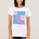 Do you like music theme shirts? This tshirt has a pattern of bass clefs done in yellow, pink, blue, gray and purple.
