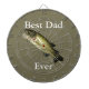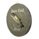 Surprise dad with this cool Bass Fish Best Dad Ever Custom dartboard. It is designed with a largemouth bass fish on the center of safari green background. The text is "best dad ever" in white bold lettering and you can change the words if you wish. It can also be customized to different color.