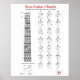 Bass Guitar Chord Charts poster includes the seven basic guitar chord fingers for the seven major chords, A, B, C, D, E, F, and G. Fingerings for each chord are shown in 3 variations, major, minor and 7th. Along with the chord fingerings, is included a guitar fretboard with the major notes for the first 12 frets. The sharps and flats have been left out to make the fret board a little easier to read. This easy to see poster is a great reference for the beginner or intermediate guitar player.