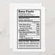 Bass singer "Nutritional Information Label" Card