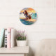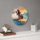 Basset Hound Beach Surfing Painting Large Clock